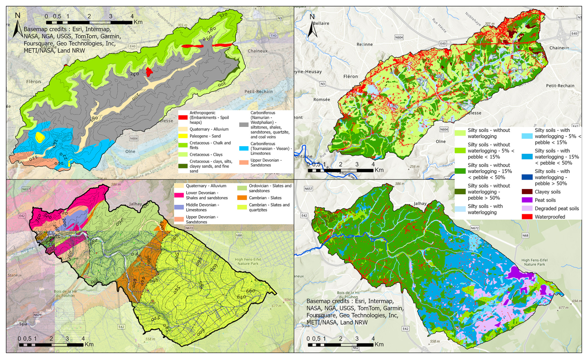 The Vesdre catchment is characterized by a complex geological history, spanning from the Cambrian to the Holocene, marked by two orogenic cycles (Caledonian and Variscan) (Fig. 2). This evolution has resulted in significant lithological and pedological diversity. The nature of the soils in the studied catchments is shaped by two main contributions.