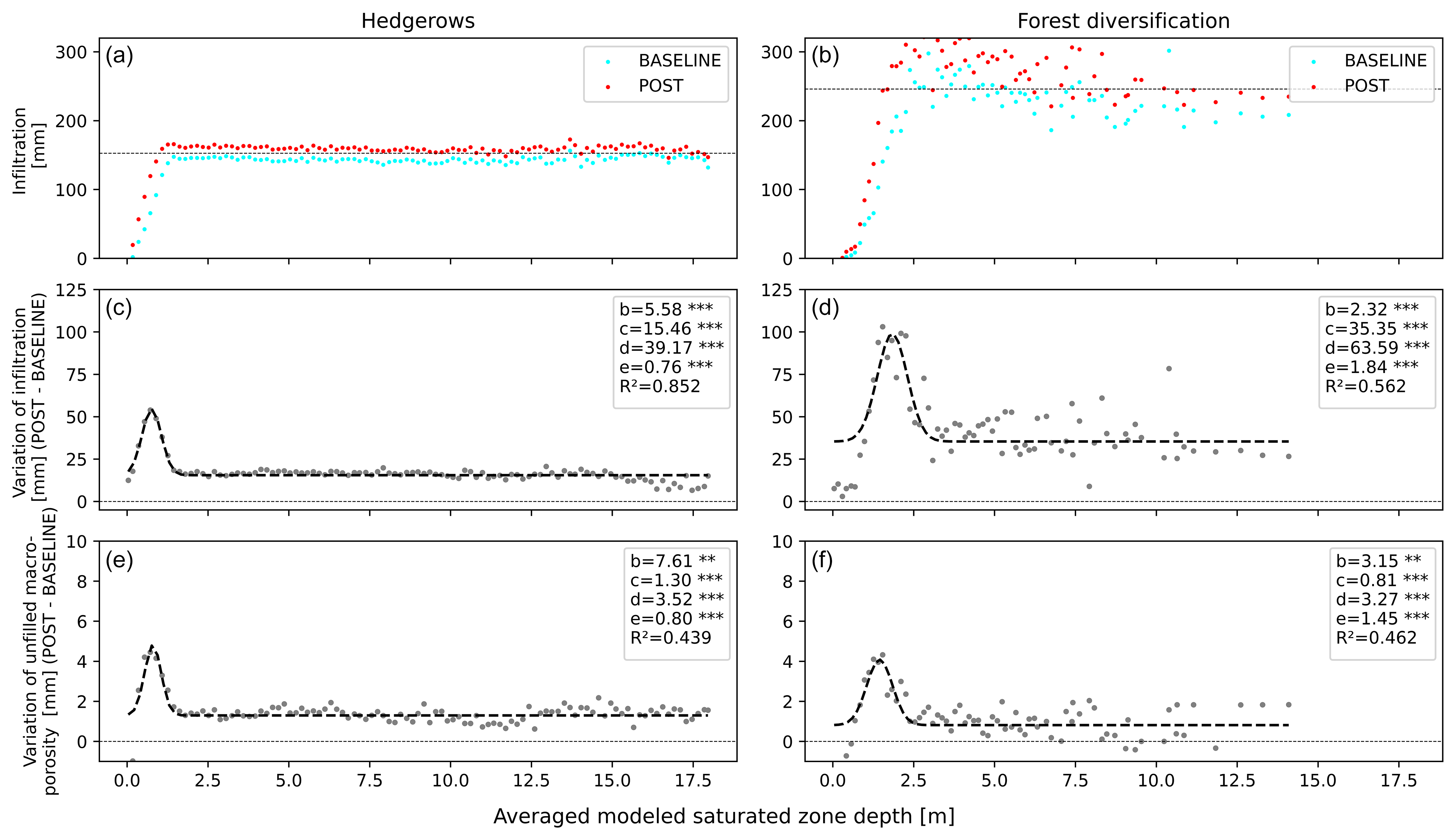 These NbS measures are incorporated into the model by adjusting some key parameter values (Table 4). It should be noted that although some literature exists on how NbSs may influence these parameters, significant uncertainties remain regarding their exact values, as they cannot be assumed to apply directly to this specific case. These parameter values should be considered as hypotheses, while remaining within plausible ranges.