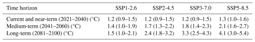 Table B1IPCC Sixth Assessment Report (AR6) global mean surface temperature change projections for four Shared Socioeconomic Pathway (SSP) climate scenarios relative to 1961–1990 baseline (which is notionally representative of the mid-point for much of the information used to derive the design information provided in ARR2019). The 90 % uncertainty interval is provided in parentheses∗.