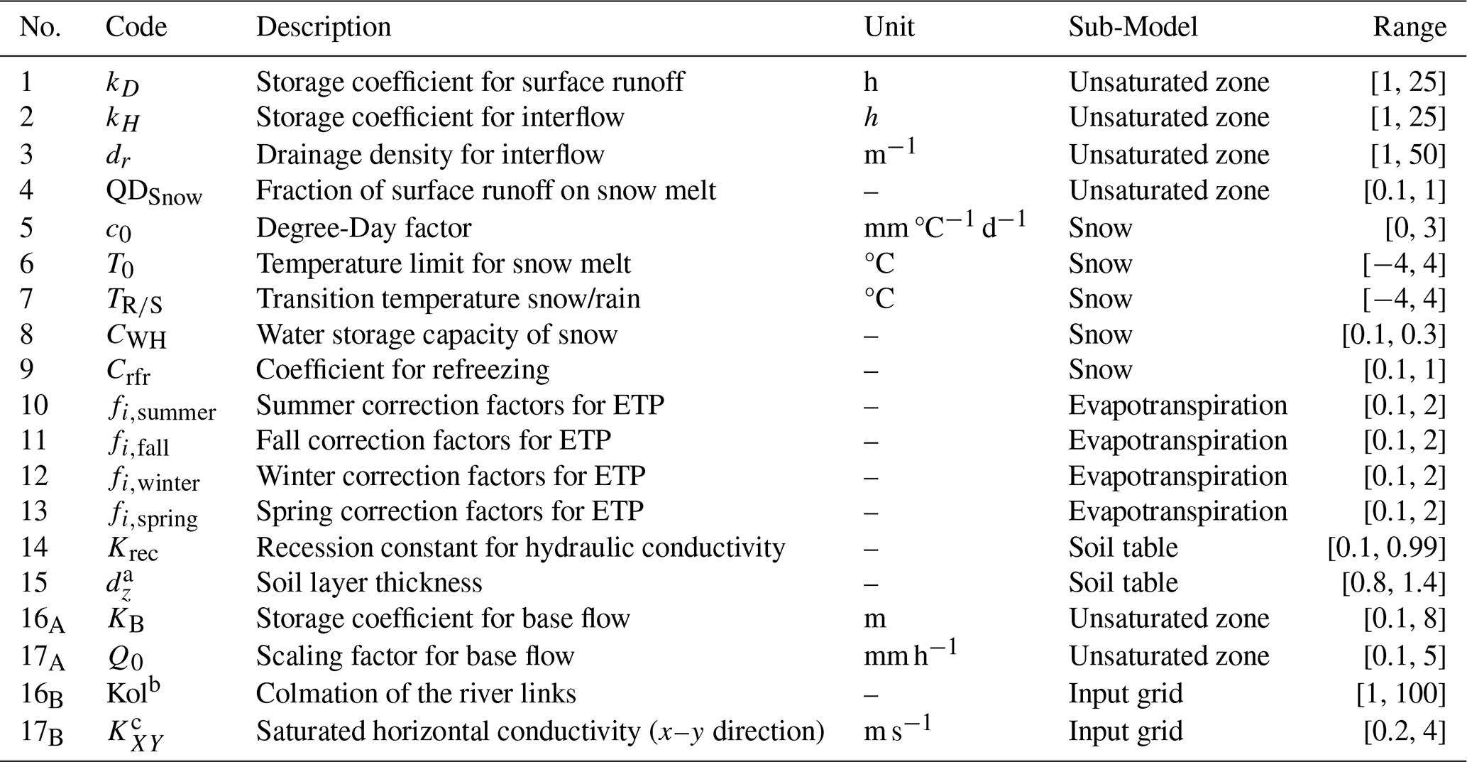 Table 4Description of the parameters used for the calibration of WaSiM.