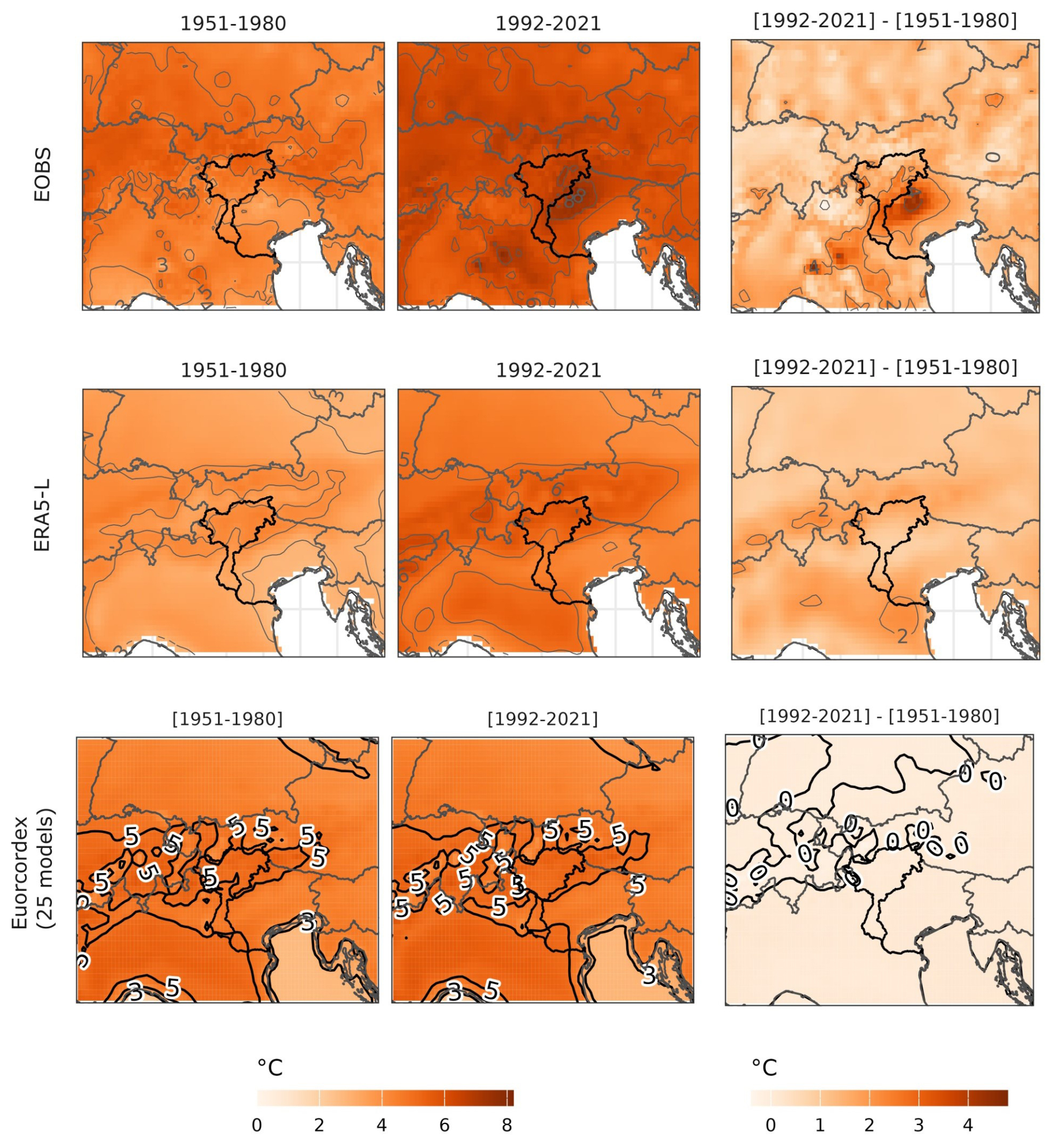The same periods used for the observation-based analysis (i.e., 1951–1980 and 1992–2021) were adopted, providing circulation-conditioned and unconditioned reconstructions for each period and model. To evaluate the performance of the models against the observations, we analysed their ability to reproduce the direction of change between periods (i.e., the sign of difference between 1992–2021 and 1951–1980) as well as the magnitude of the change.
