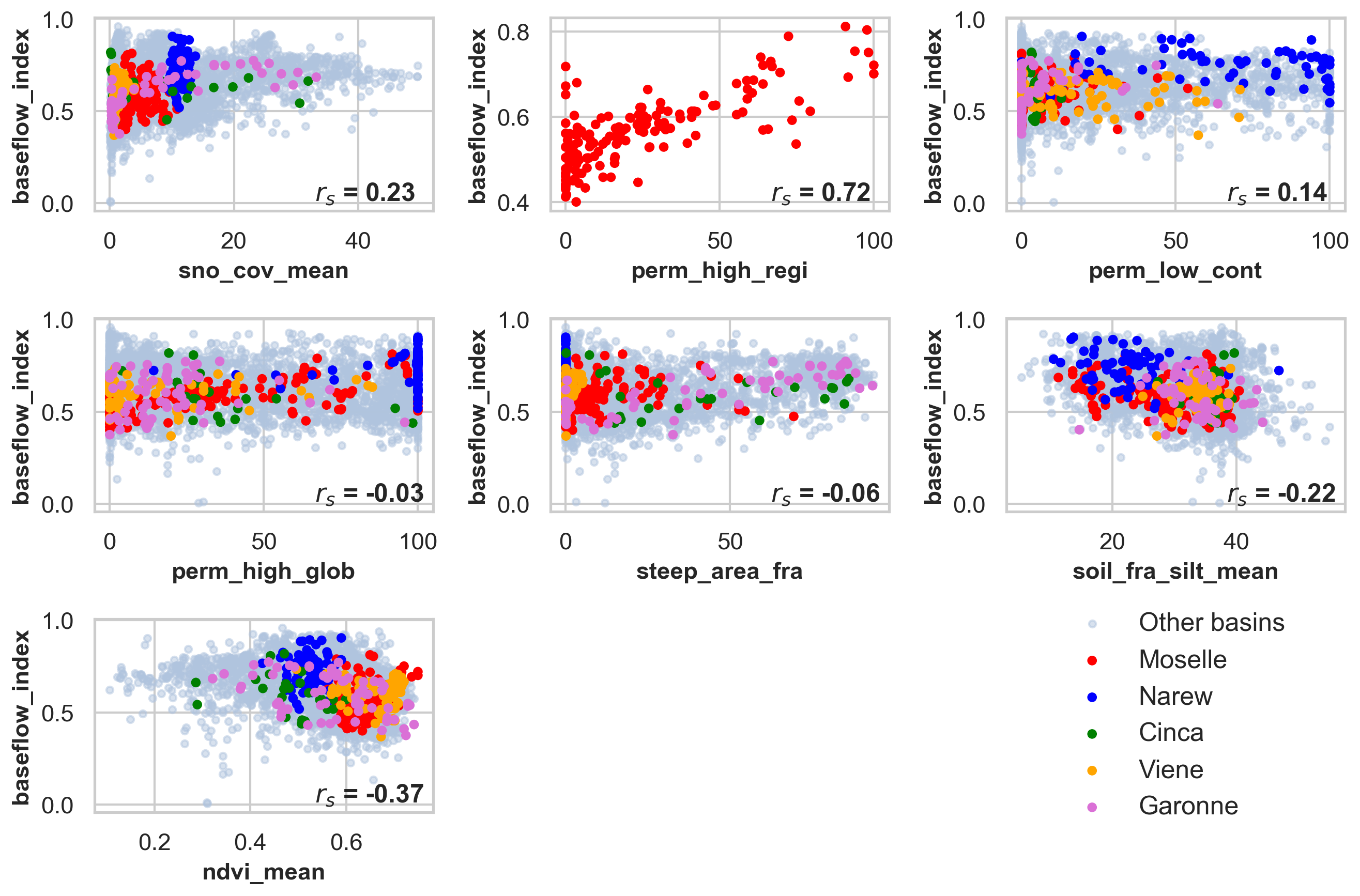 - Appendix D: Extra scatter plots between attributes groups and baseflow index