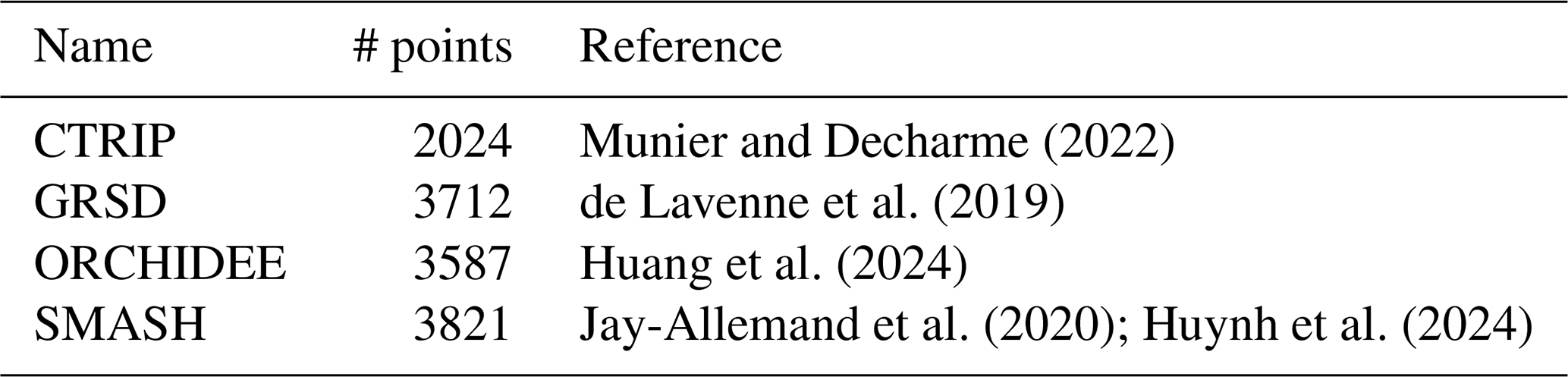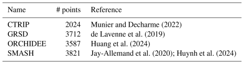 Munier and Decharme (2022)de Lavenne et al. (2019)Huang et al. (2024)Jay-Allemand et al. (2020); Huynh et al. (2024)Table 2Names of the surface hydrological models, the associated number of streamflow simulation points and the corresponding reference.