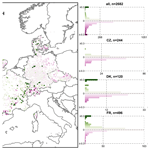 Model performances for scenario II tended to be higher when more E-OBS stations were located in or around a catchment. Except for Sweden (for which we only considered three catchments), there was a significant positive correlation (p-value<0.05) between the station density and the model performances achieved with the E-OBS forcing data for all countries when all catchments were considered. To avoid that correlations are only due to a tendency for higher model performances in large catchments and more stations in large catchments, we also analysed the relationship for only the catchments smaller than 100 km2. For Spain, the threshold was set to 500 km2 due to the small number of catchments smaller than 100 km2. There were still significant positive correlations for all countries, but not for Denmark and France. The correlations even increased for Switzerland (r=0.53 to r=0.71) and Great Britain (r=0.32 to r=0.36).