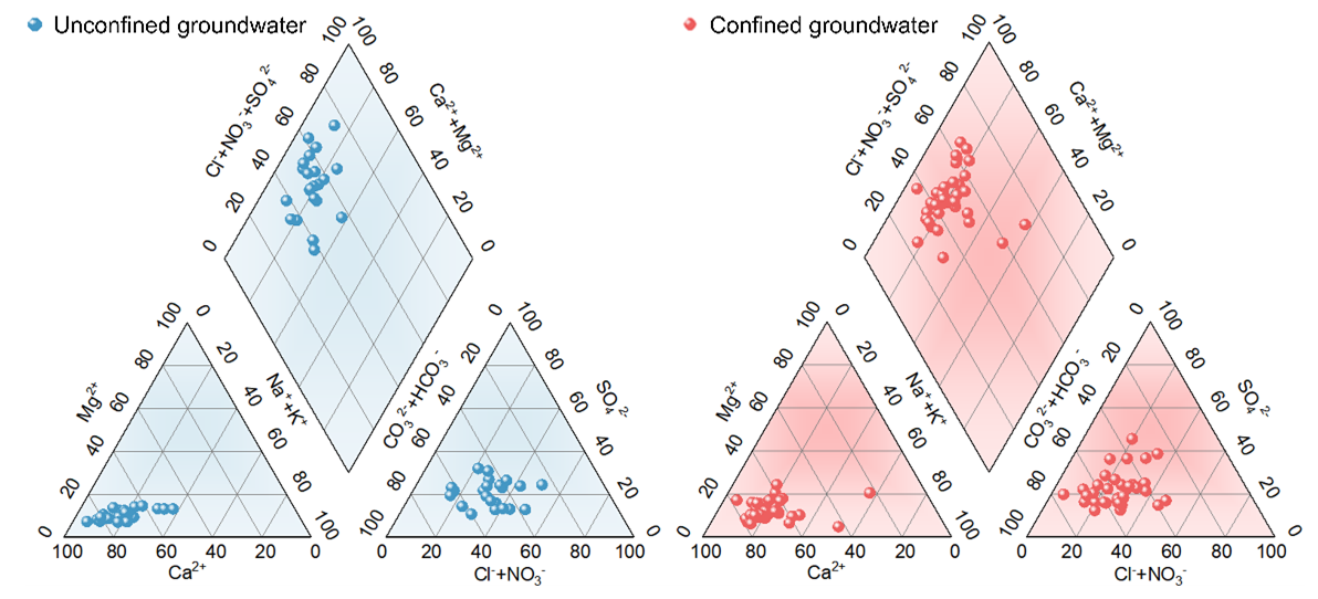 Figure 2Piper graph illustrating hydrochemical types of groundwater.