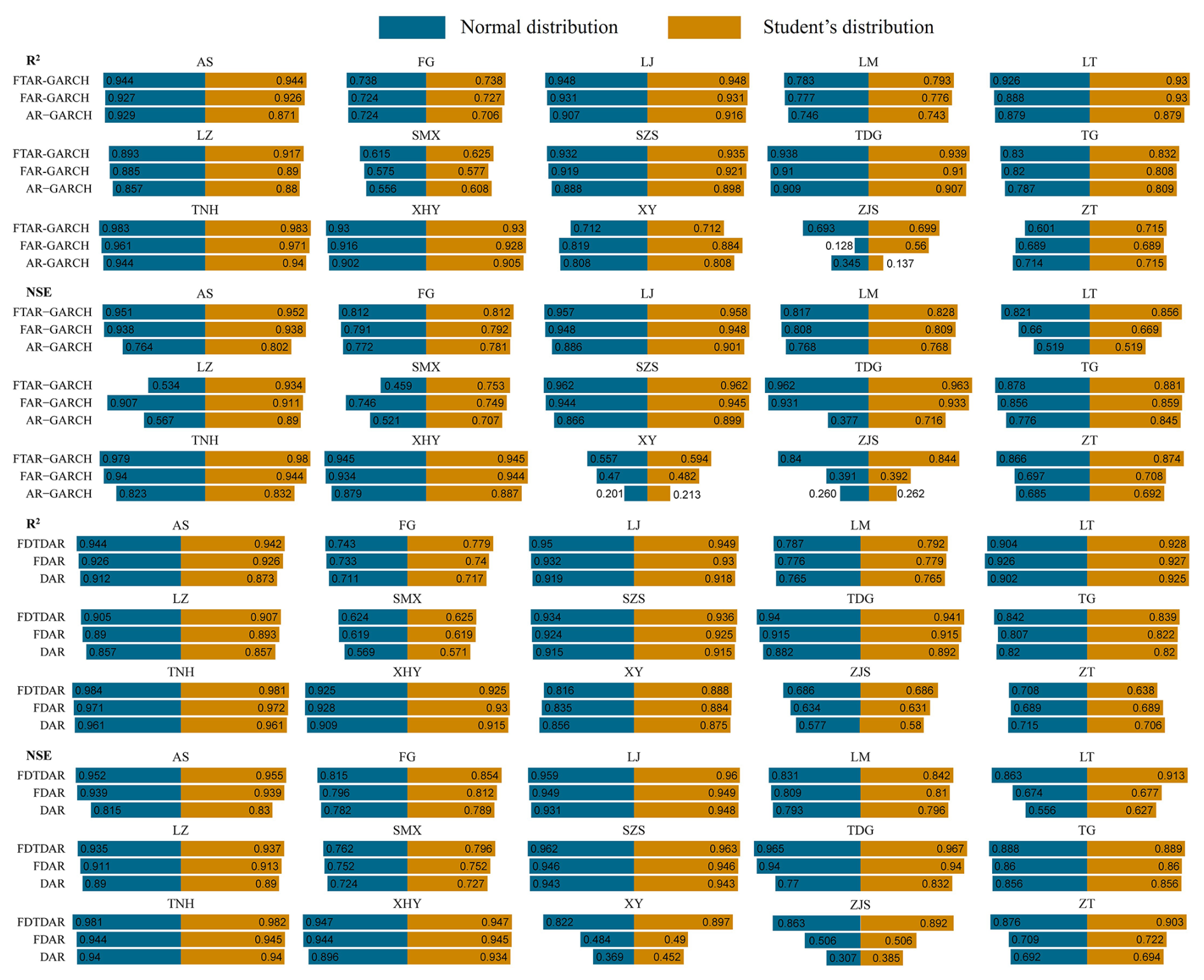 The expansion of the conditional distribution in the classic ARCH model starts from the Student's t distribution. Regarding the ARCH model, several studies (Engle, 1982, 1990; Engle and Ng, 1993; Engle et al., 1987) mentioned after extensive research that the conditional distribution of the volatility model can adopt a non-Gaussian form. Therefore, Bollerslev (1986) first used the student's t distribution to describe the distribution form of the residuals. This study used the student's t distribution to expand the conditional distribution of the DAR model.
