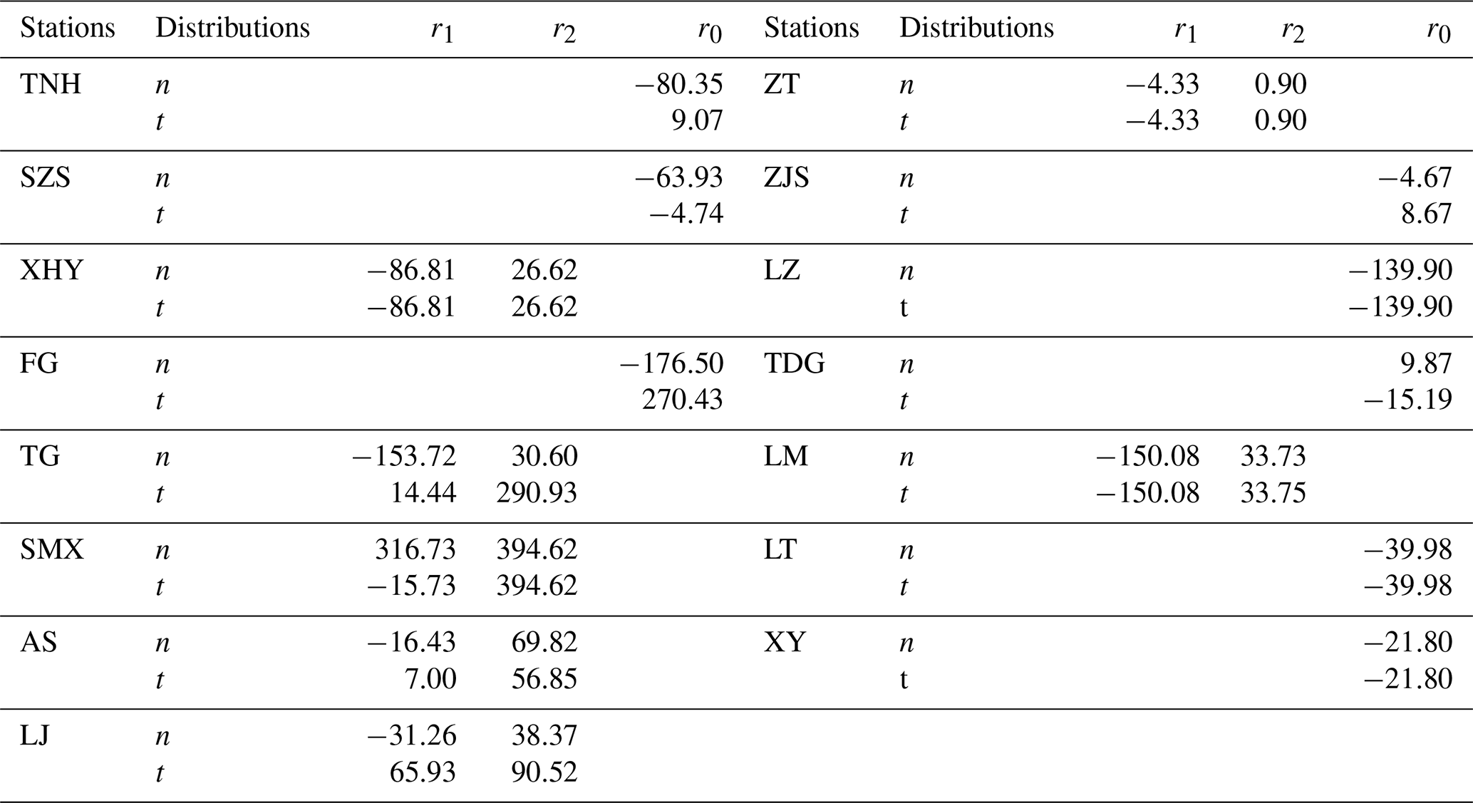 In this study, the quasi-maximum likelihood estimation under both residual distributions is implemented using the nlminb function in R version 4.4.1, which is an efficient numerical optimization tool. It returns the negative value of the likelihood function; therefore, the actual likelihood value used in the estimation is the negative of the function's output. For both residual distribution scenarios, the model orders (p11, p21, p12, p22, q11, q12, q21, and q22; p1, p2, q1 and q2) are exhaustively searched in the range of 0 to 10. The initial values of the parameters are determined based on the autocorrelation functions at different lag orders up to the corresponding model order. Additionally, the nlminb function allows for setting constraints on parameter values, which are specified based on the theoretical requirements of the model. Specifically, the parameters associated with the first-order moments are allowed to vary over the entire real line, while the parameters related to the second-order moments are constrained to be greater than 0. The degrees of freedom of the Student's t distribution are estimated jointly with the other model parameters, and a constraint of greater than 2 is imposed to ensure numerical stability.