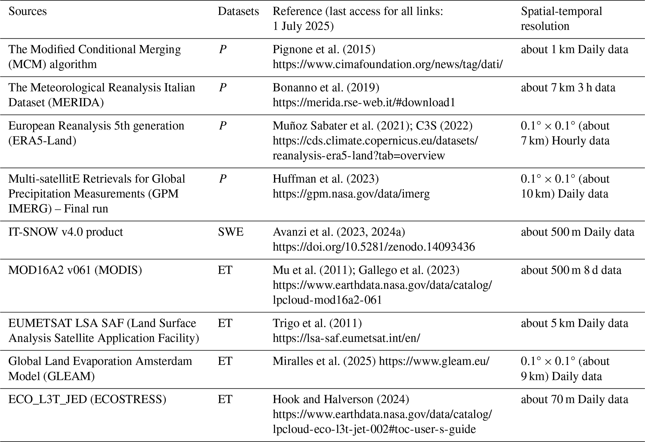 2.2.2 Hydro-meteorological regional and global datasets