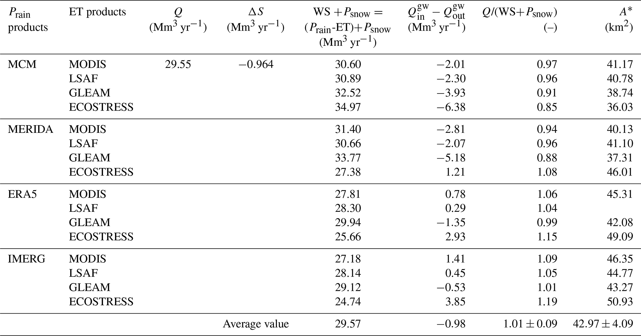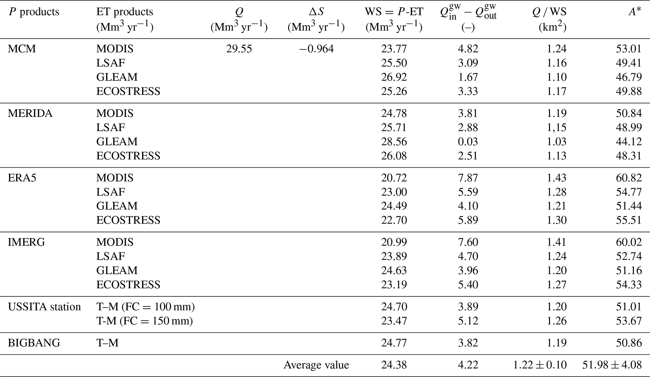 2.4.1 Estimation of the water storage changes (ΔS)