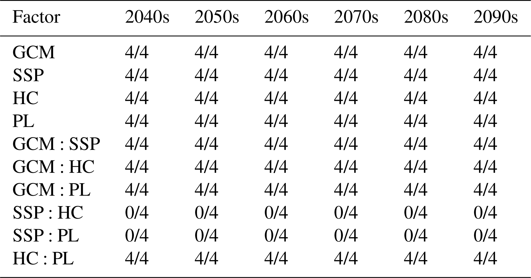 For this analysis, the primary sources of uncertainty considered are General Circulation Models (GCMs), Shared Socioeconomic Pathway (SSP) scenarios, hydrological conditions (HC) during the calibration period, and period length (PL). Each of these sources could have a significant impact on the projections of hydrological models; therefore, their comprehensive evaluation is crucial (Morim et al., 2019; Yip et al., 2011). Higher-order interactions (e.g., three-way) were excluded as they are often difficult to interpret physically and can introduce noise into the model.