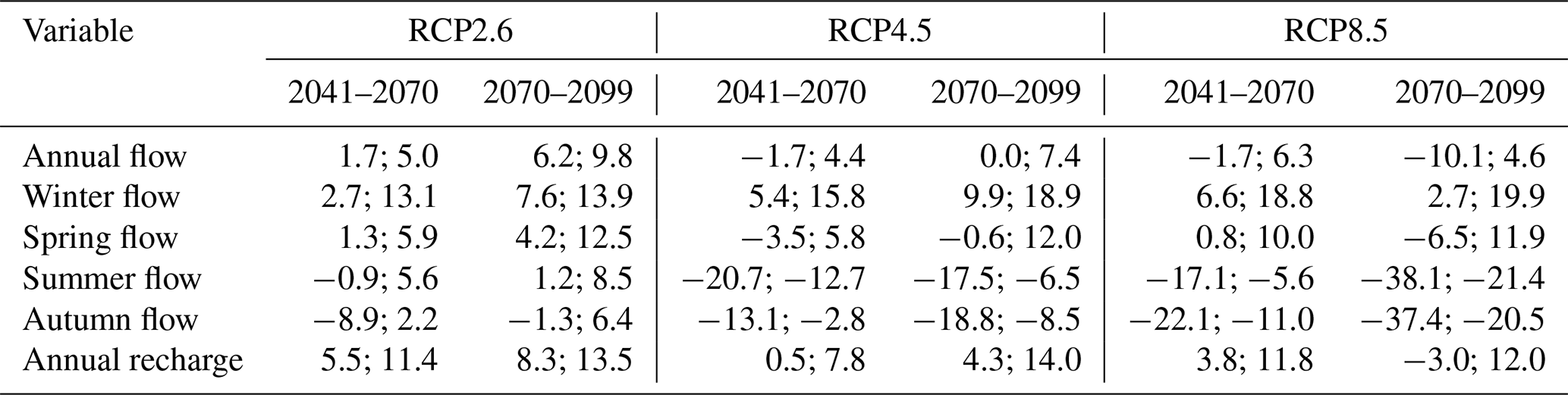 - Summary of the projected changes for mean river flows and groundwater recharge
