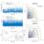 Non-stationarity in the coupling was evaluated using a time-varying Gumbel copula model, showing significant increasing trends in correlation for all pairs (p-value <0.05) (Fig. 3e). Notably, the correlations for P1–P3 and P1–P2 have p-values near zero, whereas the correlation for P2–P3 is approximately 0.03 (Fig. 3e). The pairs of extremes of SWH exhibited a change in correlation with time, with the Gumbel coupling parameter changing from 1.98 to 2.46 for P1–P2 pair, 2.05 to 2.43 in P1–P3, and 1.42 to 1.61 in P2–P3 (Fig. 3c, d, g, h, j, k). The Monte Carlo extractions (gray dots in Fig. 3c, d, g, h, j, k) closely matched the data samples, demonstrating good agreement. The goodness-of-fit metrics indicated accurate results, with , , (Fig. 3a).