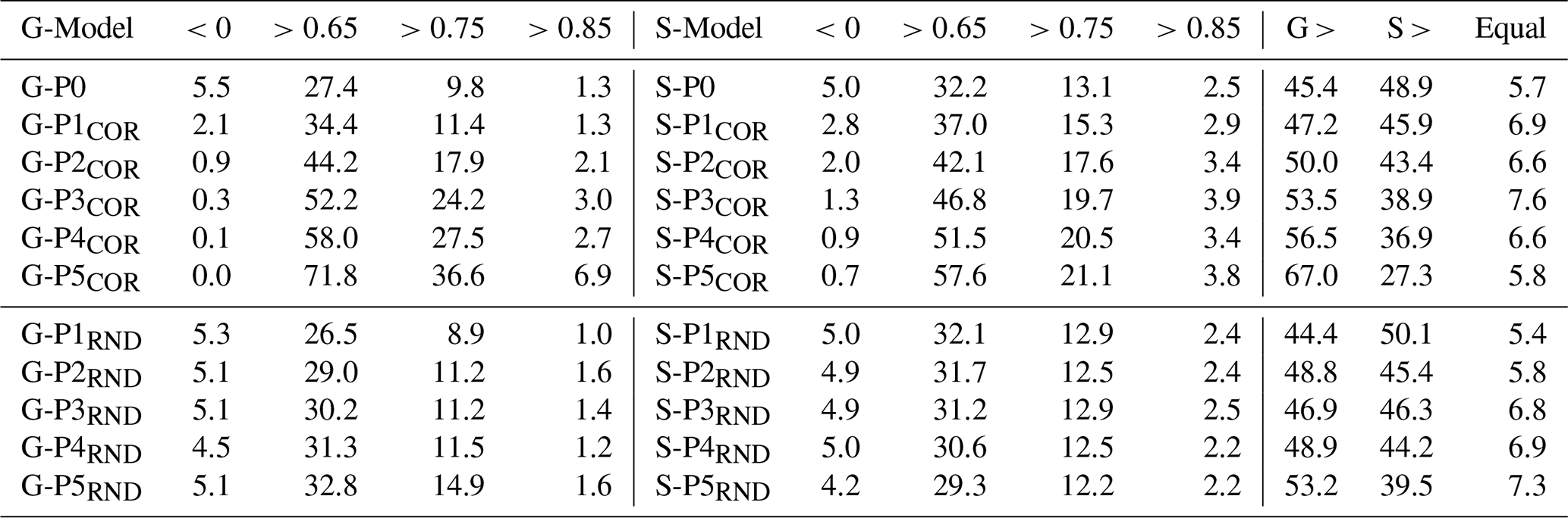 To investigate how increasing the internal consistency of the training data affects global model performance, we compare the baseline model G-P0 to a series of partitioned models (G-P1COR to G-P5COR) trained on increasingly homogeneous subsets. In each step, 500 wells with the lowest average correlation to all other time series were removed to create dynamically more similar training sets.