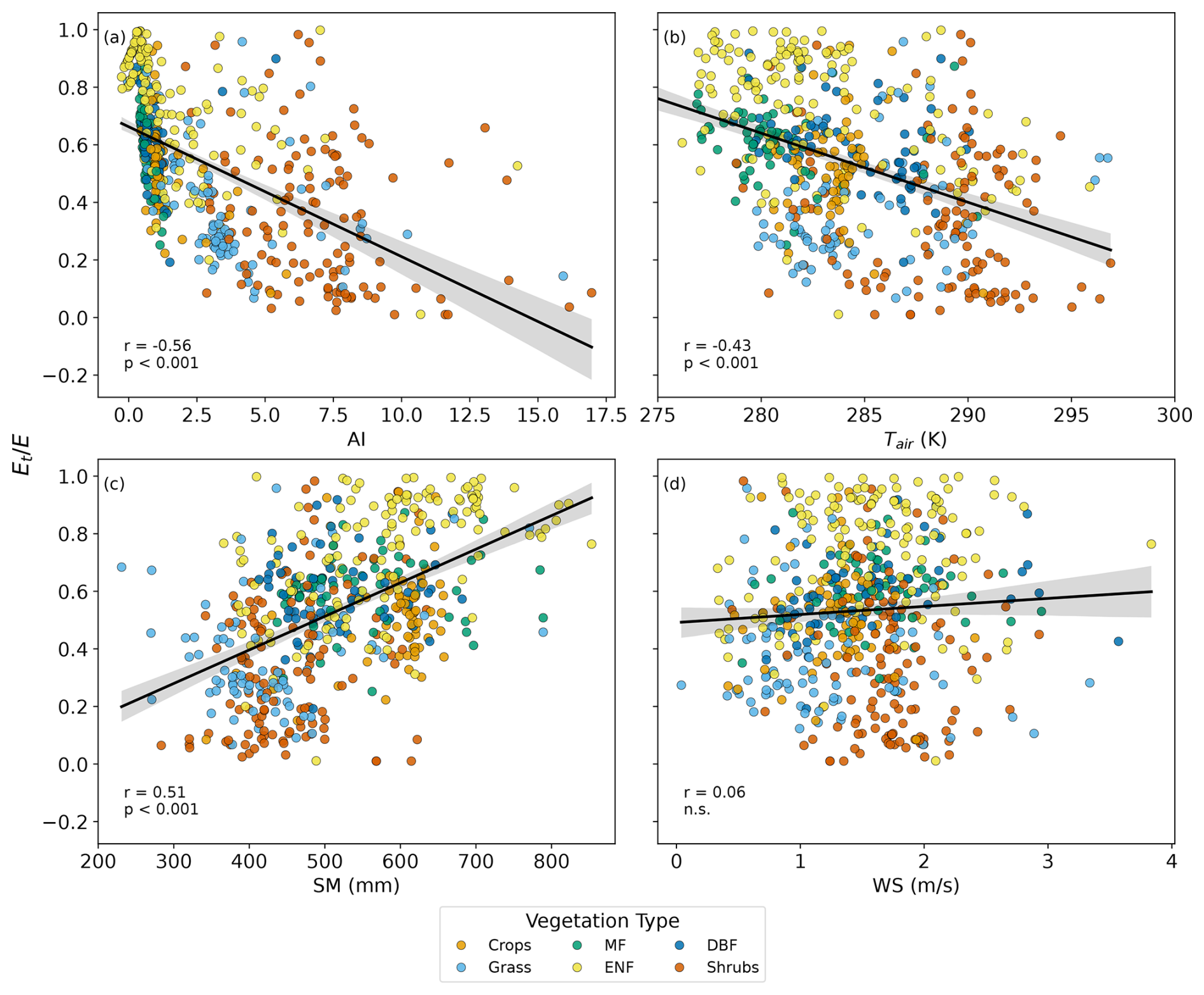 Wang, L., Good, S. P., and Caylor, K. K.: Global synthesis of vegetation control on evapotranspiration partitioning, Geophysical Research Letters, 41, 6753–6757, https://doi.org/10.1002/2014GL061439, 2014.