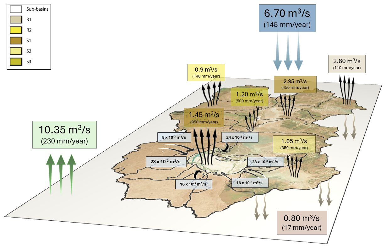 Within arid and semi-arid landscapes, a large fraction of drainage is classified as endorheic, i.e. internally drained basins where water is retained within topographic boundaries and lost primarily through evaporation (Gao et al., 2018). This endorheic paradigm has traditionally provided a simplifying framework: precipitation, surface runoff, and groundwater flows converge to a terminal lake, wetland, or salt flat, with no surface or subsurface outflows across the basin boundaries (Yapiyev et al., 2017). Consequently, water budgets in endorheic systems are generally assumed to be closed at the catchment scale, with evaporation and, in some cases, groundwater storage changes balancing the atmospheric inputs (Petch et al., 2023; Liu, 2022). However, increasing evidence suggests that endorheic basins are not always fully closed. Subsurface groundwater exchanges can connect apparently isolated basins, with implications for water availability, ecosystem persistence, and even transboundary water conflicts (Moran et al., 2019; Alcalá et al., 2018; Belcher et al., 2009). This calls for an important re-examination of the endorheic paradigm, especially in data-scarce arid regions where evaporation is intense and subsurface processes remain poorly constrained. The relevance of this issue extends beyond drylands, as endorheic basins collectively account for nearly 21 % of the global continental land surface (Li et al., 2017).