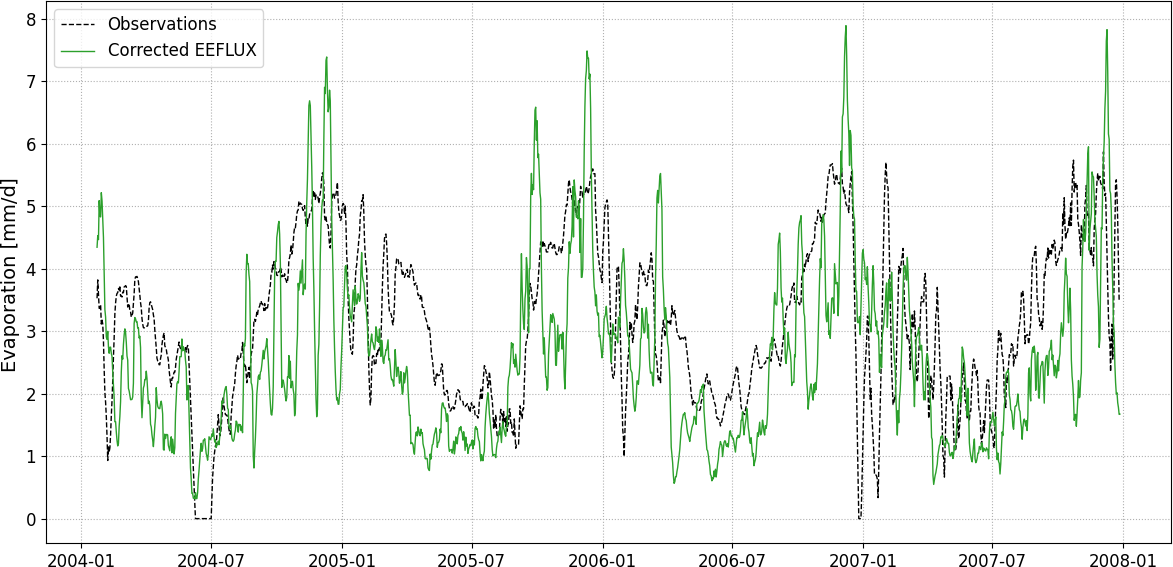 In contrast to variables like precipitation or temperature, evaporation cannot be directly measured by satellites. Instead, temperature-based evaporation models are commonly used, which implement thermal remote sensing to calculate sensible heat fluxes and estimate latent heat fluxes as a residual of the surface energy balance (e.g. Derardja et al., 2024; Zhang et al., 2016, Aryalekshmi et al., 2021).