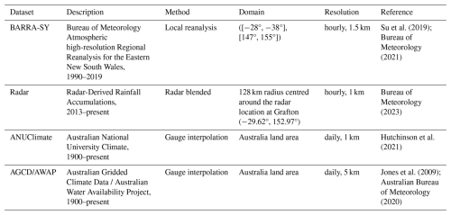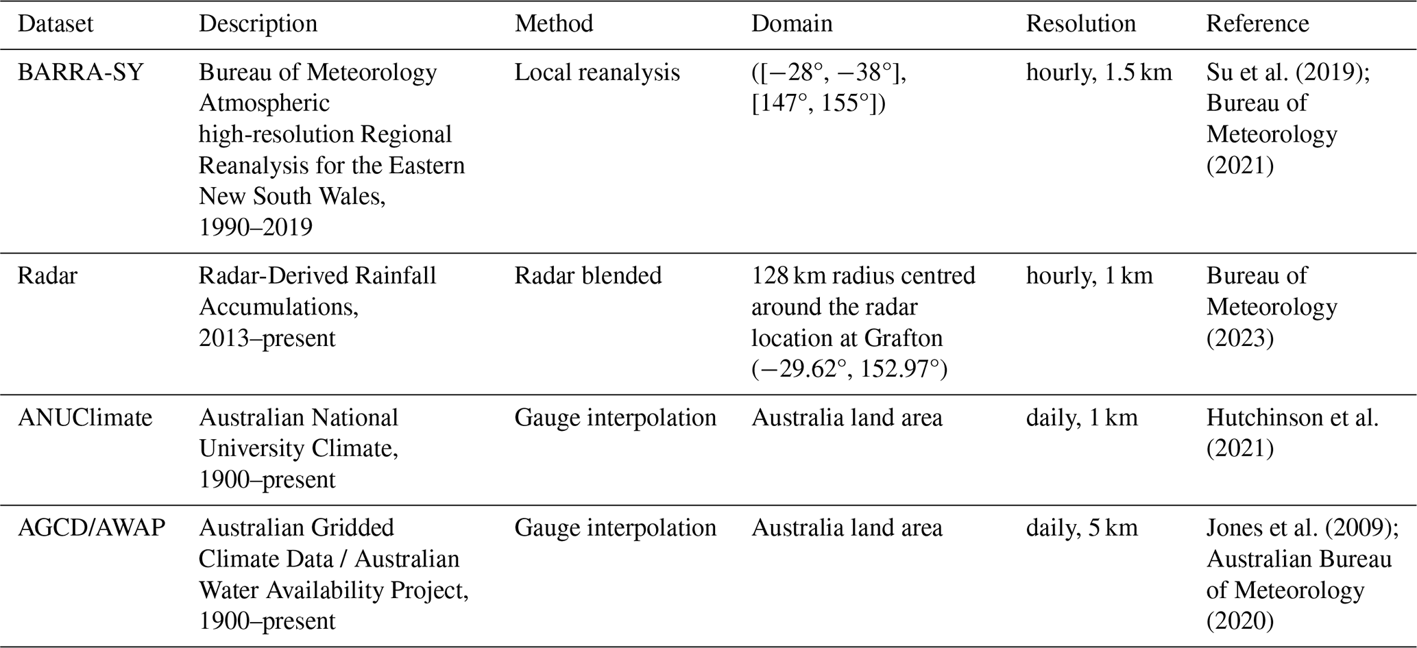 Su et al. (2019); Bureau of Meteorology (2021)Bureau of Meteorology (2023)Hutchinson et al. (2021)Jones et al. (2009); Australian Bureau of Meteorology (2020)2.2 Rainfall data