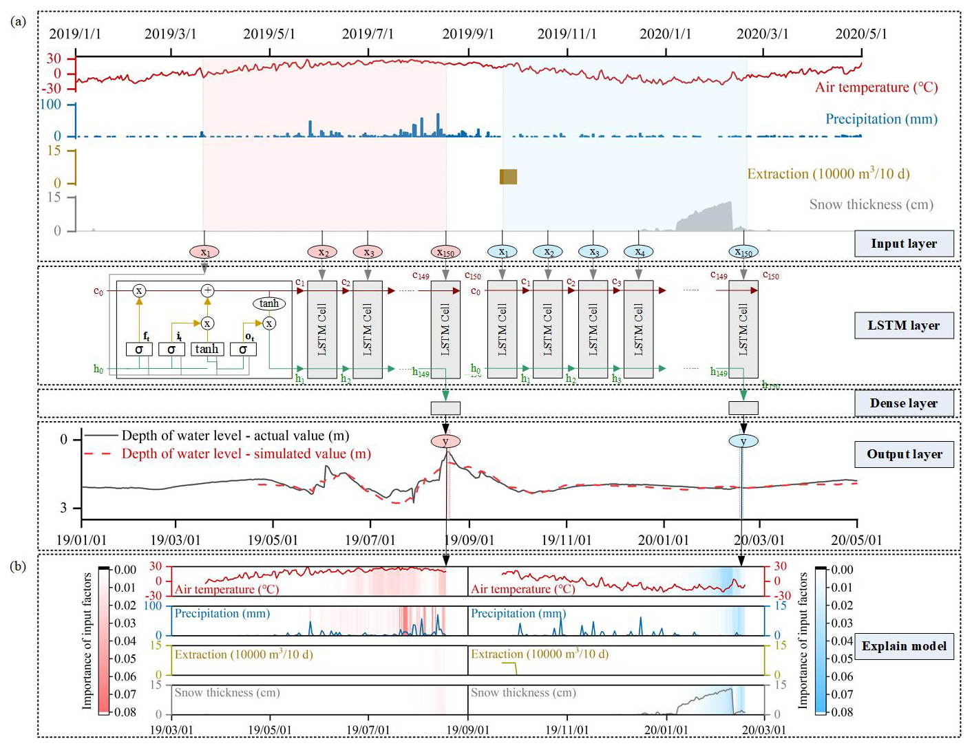 The results demonstrate the great potential of the EG method to bridge model accuracy and interpretability, offering a new perspective for analyzing complex hydrological processes. Future research may incorporate more advanced interpretability techniques to further enhance understanding of deep learning models. The significance of deep learning lies not only in high-accuracy simulations, but also in advancing the discovery of hydrological mechanisms. This study provides new methodological support and theoretical insights for groundwater resource management in seasonally frozen soil regions.