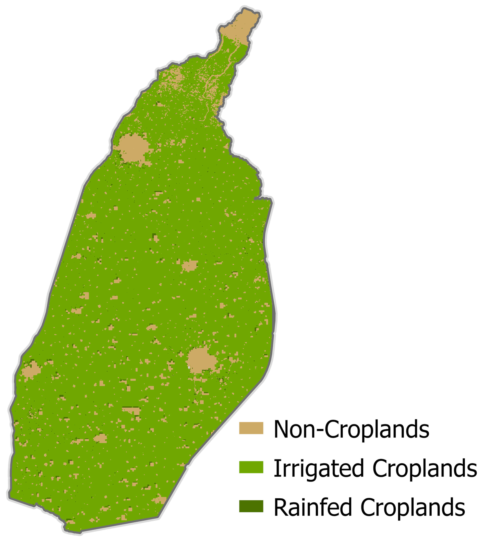 Gumma, M. K., Thenkabail, P. S., Panjala, P., Teluguntla, P., Yamano, T., and Mohammed, I.: Multiple agricultural cropland products of South Asia developed using Landsat-8 30 m and MODIS 250 m data using machine learning on the Google Earth Engine (GEE) cloud and spectral matching techniques (SMTs) in support of food and water security, GIScience & Remote Sensing, 59, 1048–1077, https://doi.org/10.1080/15481603.2022.2088651, 2022.
