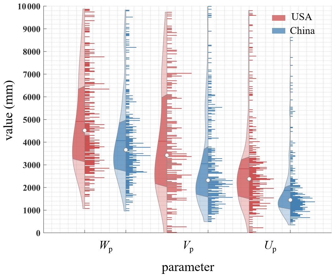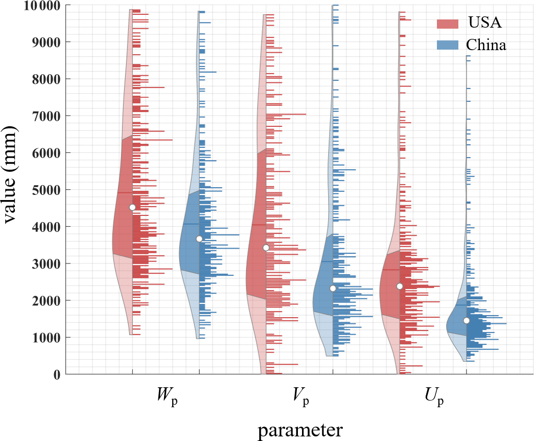 Spatially, to verify the MPS model's ability to characterize the variability of runoff components between catchments, we utilize the least squares fitting algorithm to estimate parameters, i.e., Wp, Vp and Up. The three parameters are restricted to being between 0 and 50 000 mm, which is considered high enough to not affect the parameter estimation (Gnann et al., 2019).