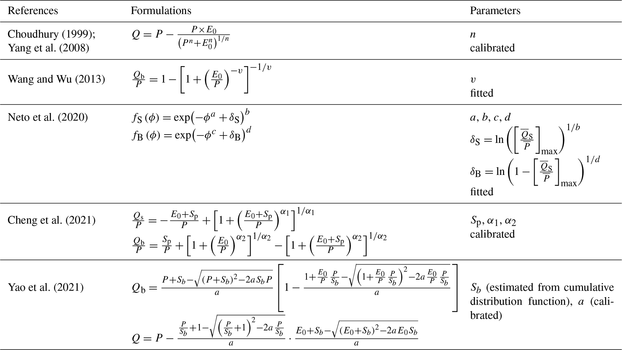 Table 1The Budyko-type formulations for estimating mean annual runoff components.