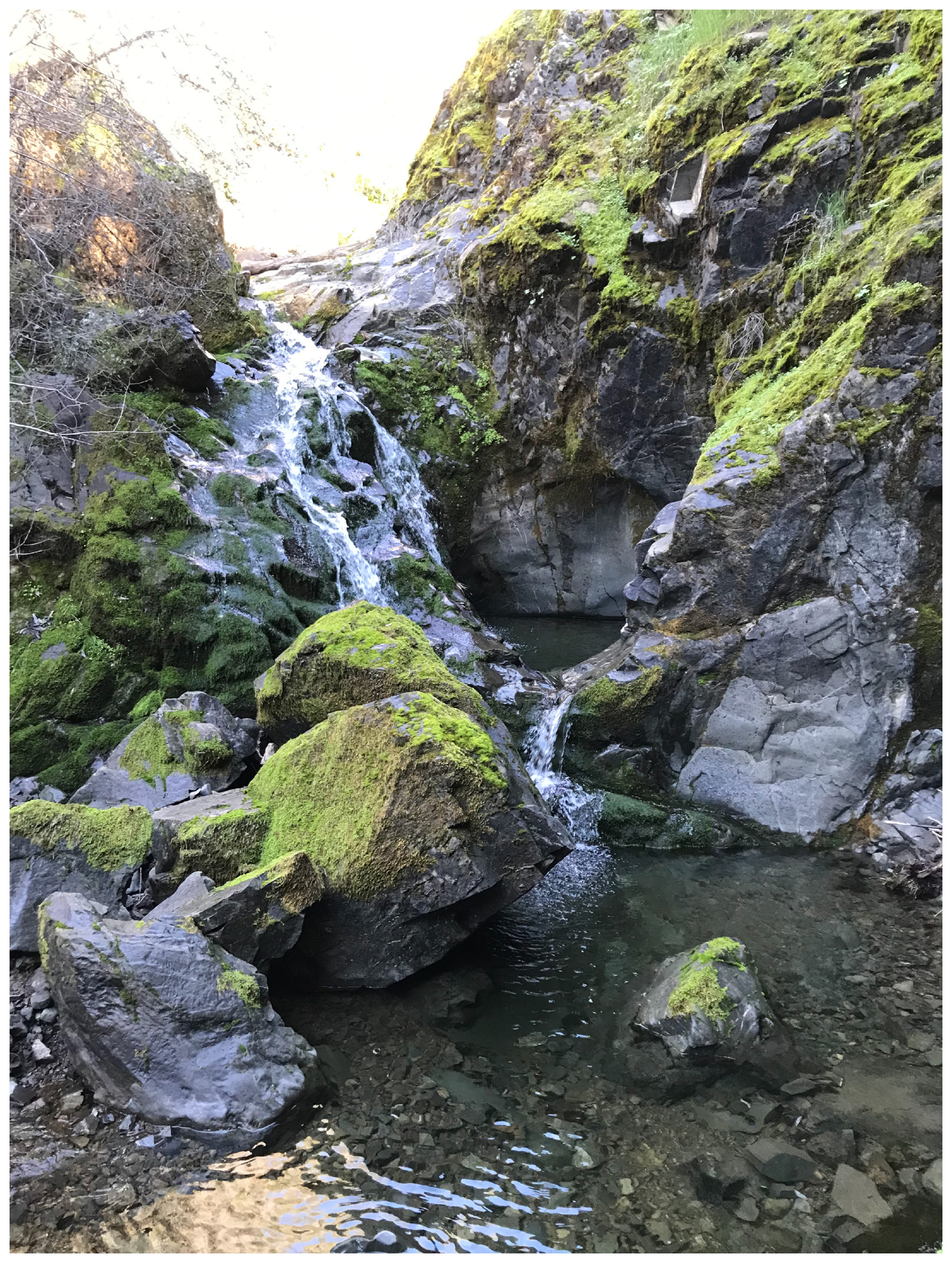 Figure A2Waterfall flowing over mossy Franciscan sandstone just upstream of the Perry Creek (PEC) stream site from January 2022.